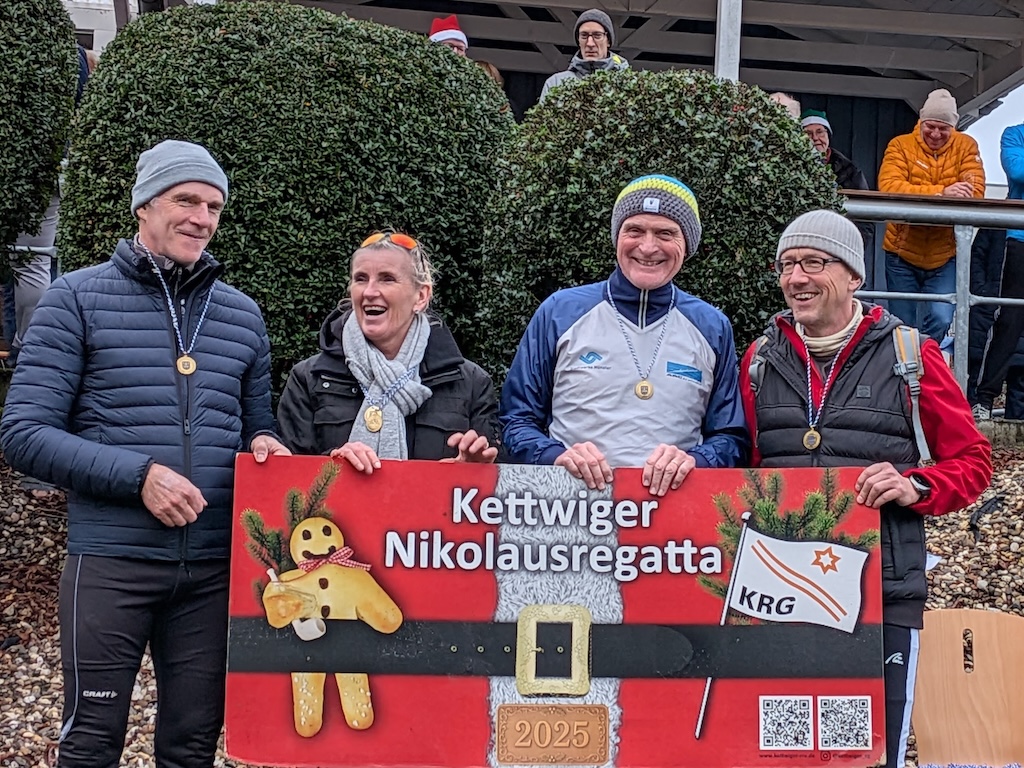 Drei Doppelvierer vom ARC waren am 7.12.25 bei der Nikolausregatta in Essen-Kettwig dabei.